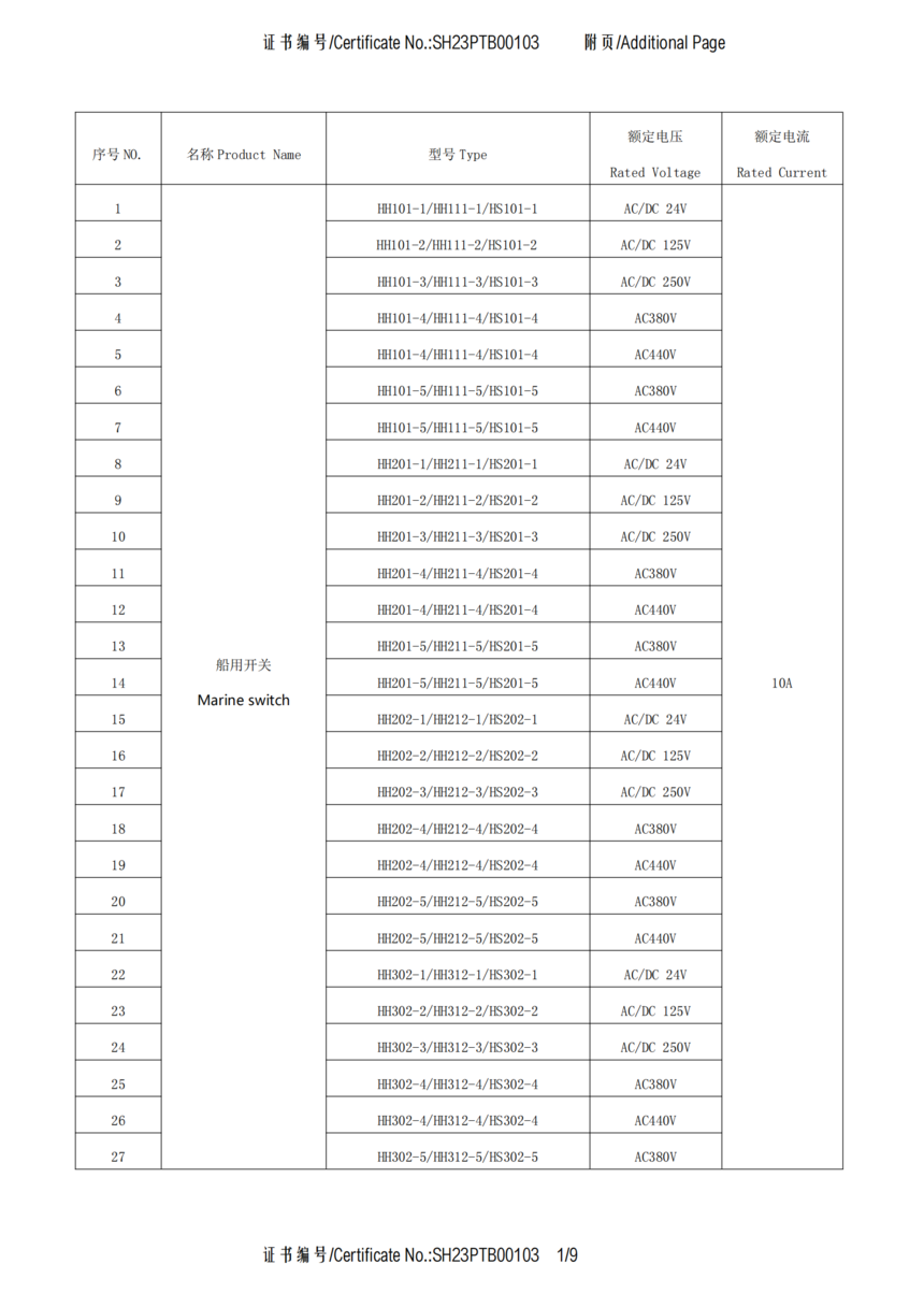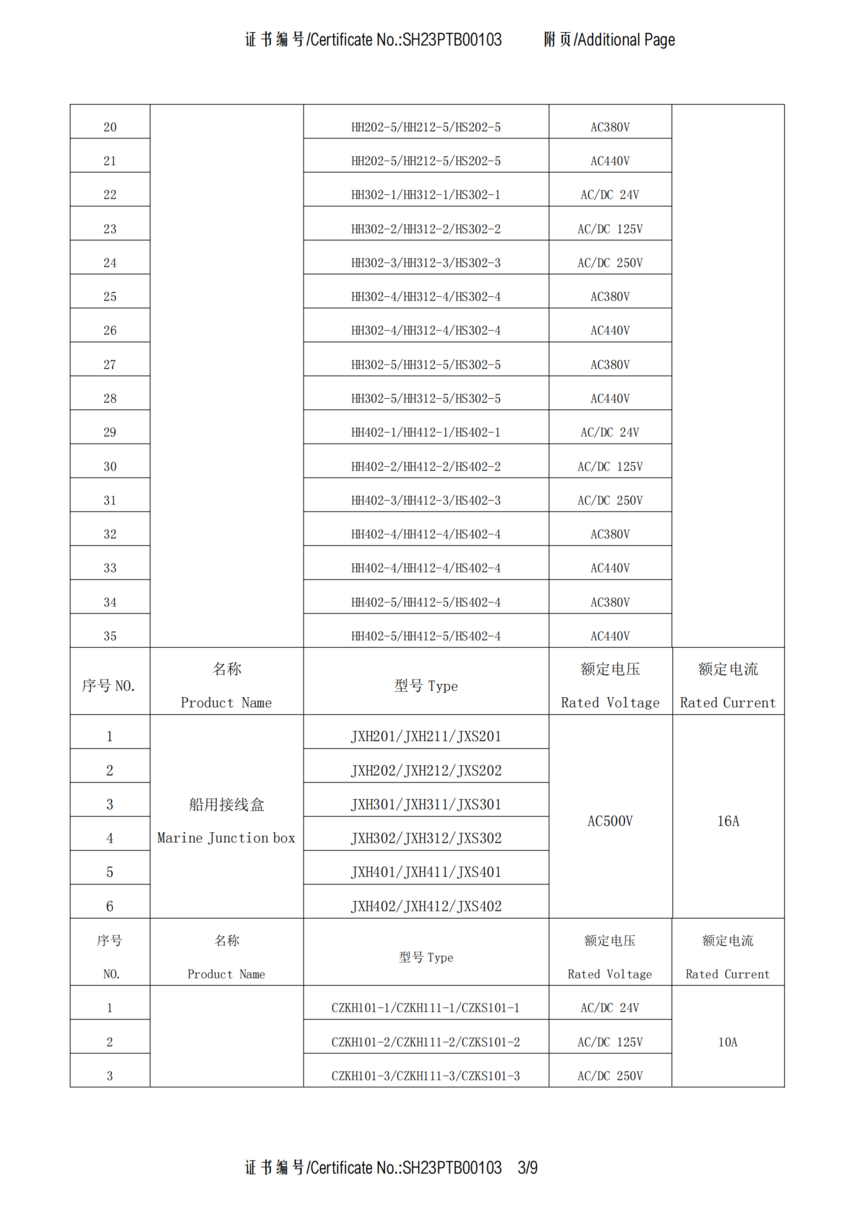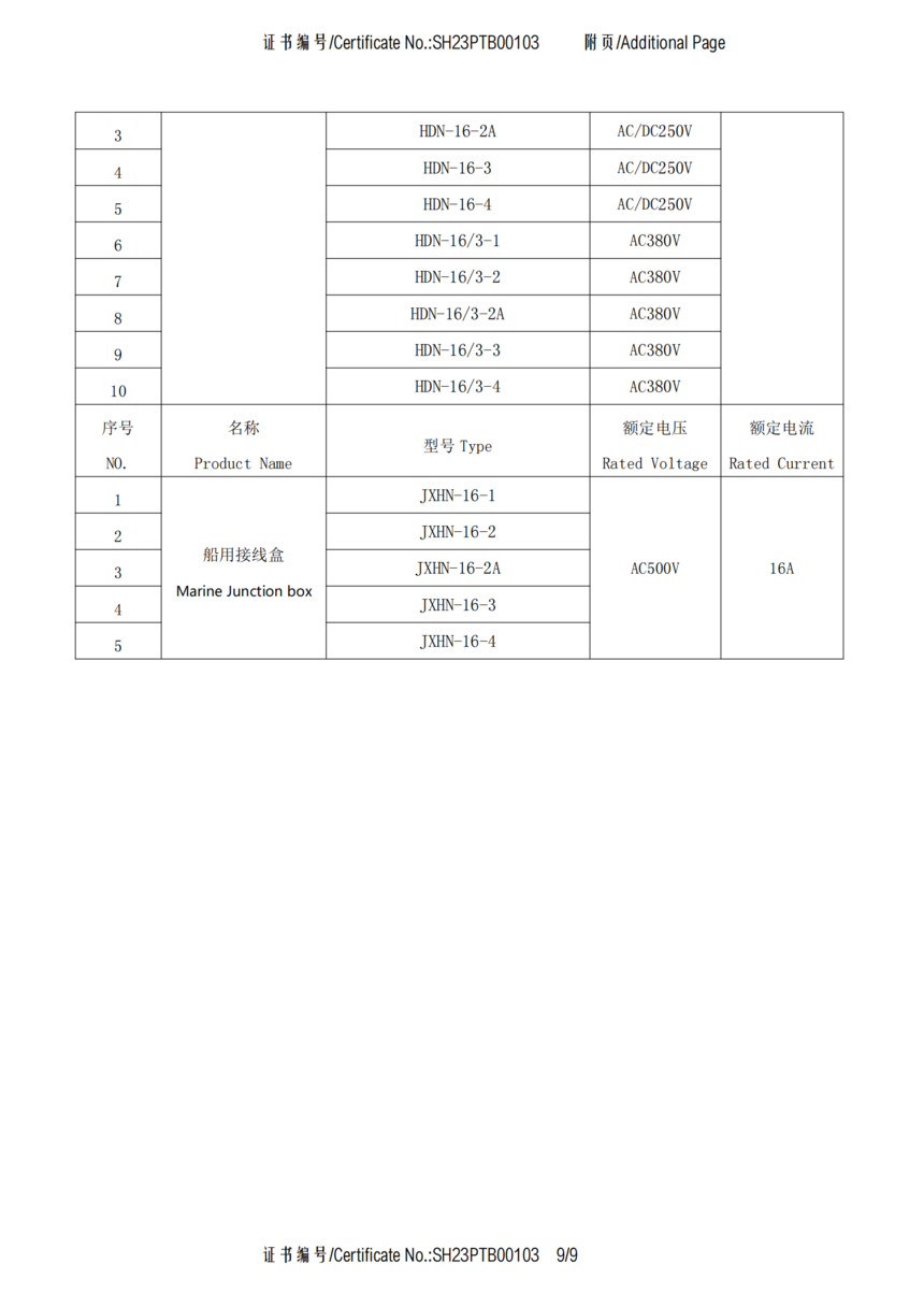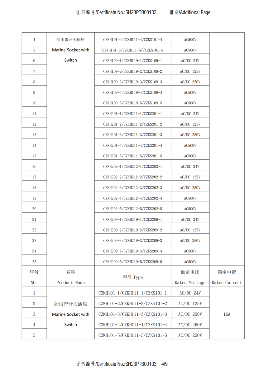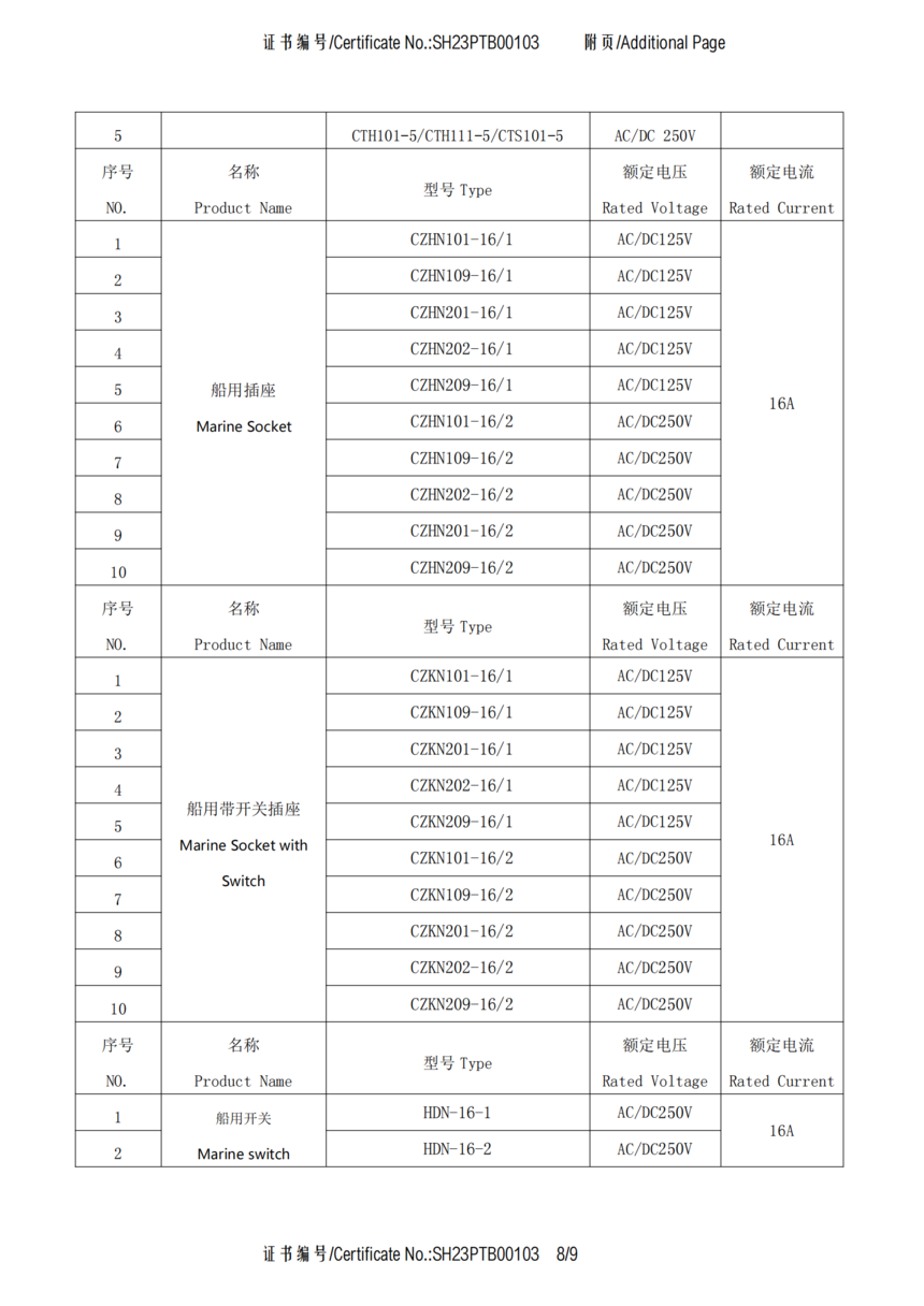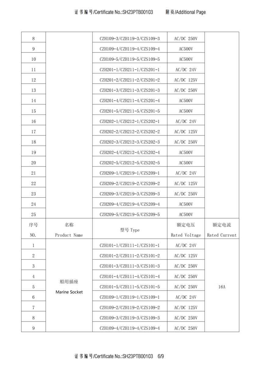 CCS船用接插件认可证书SH23PTB00103
