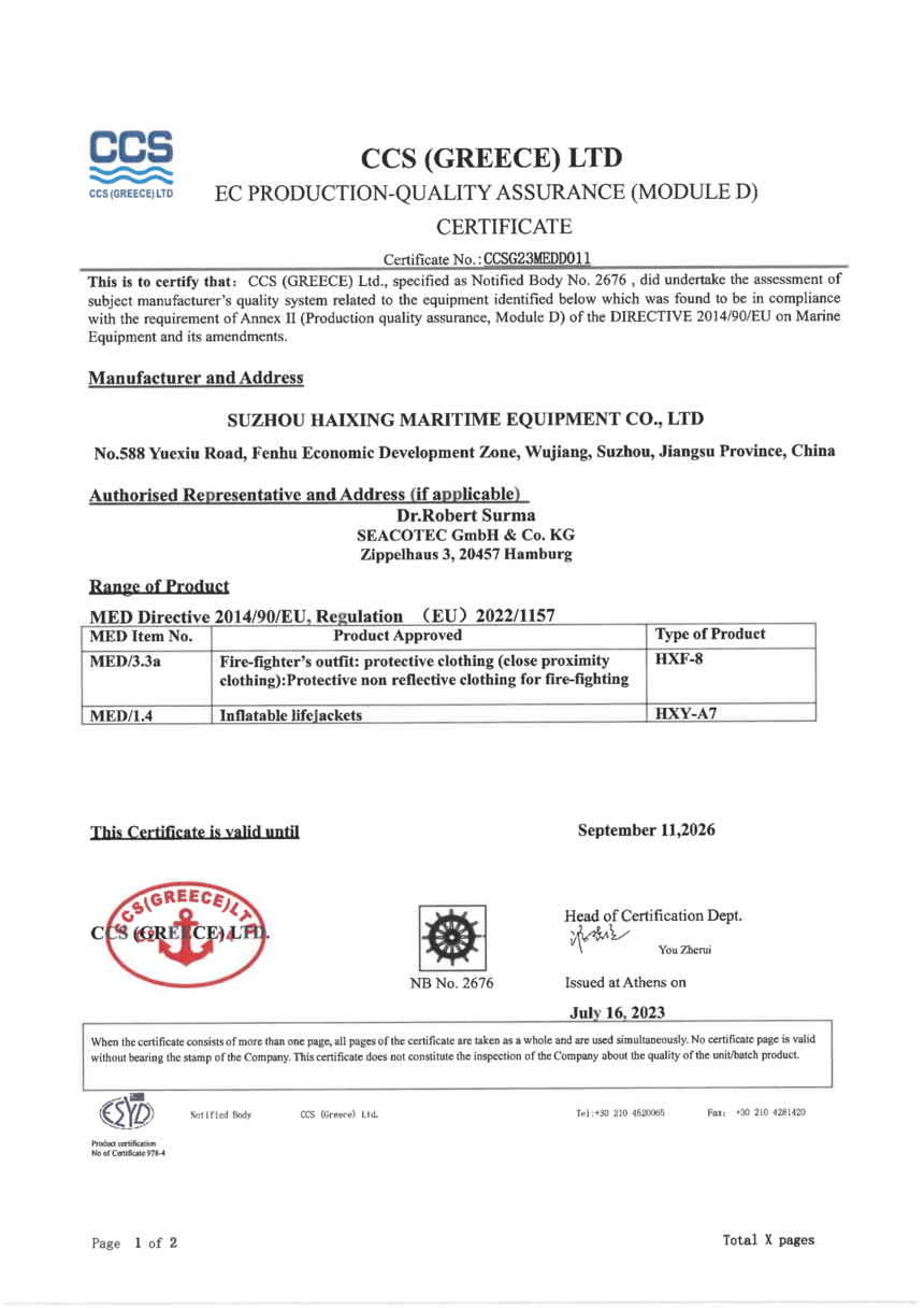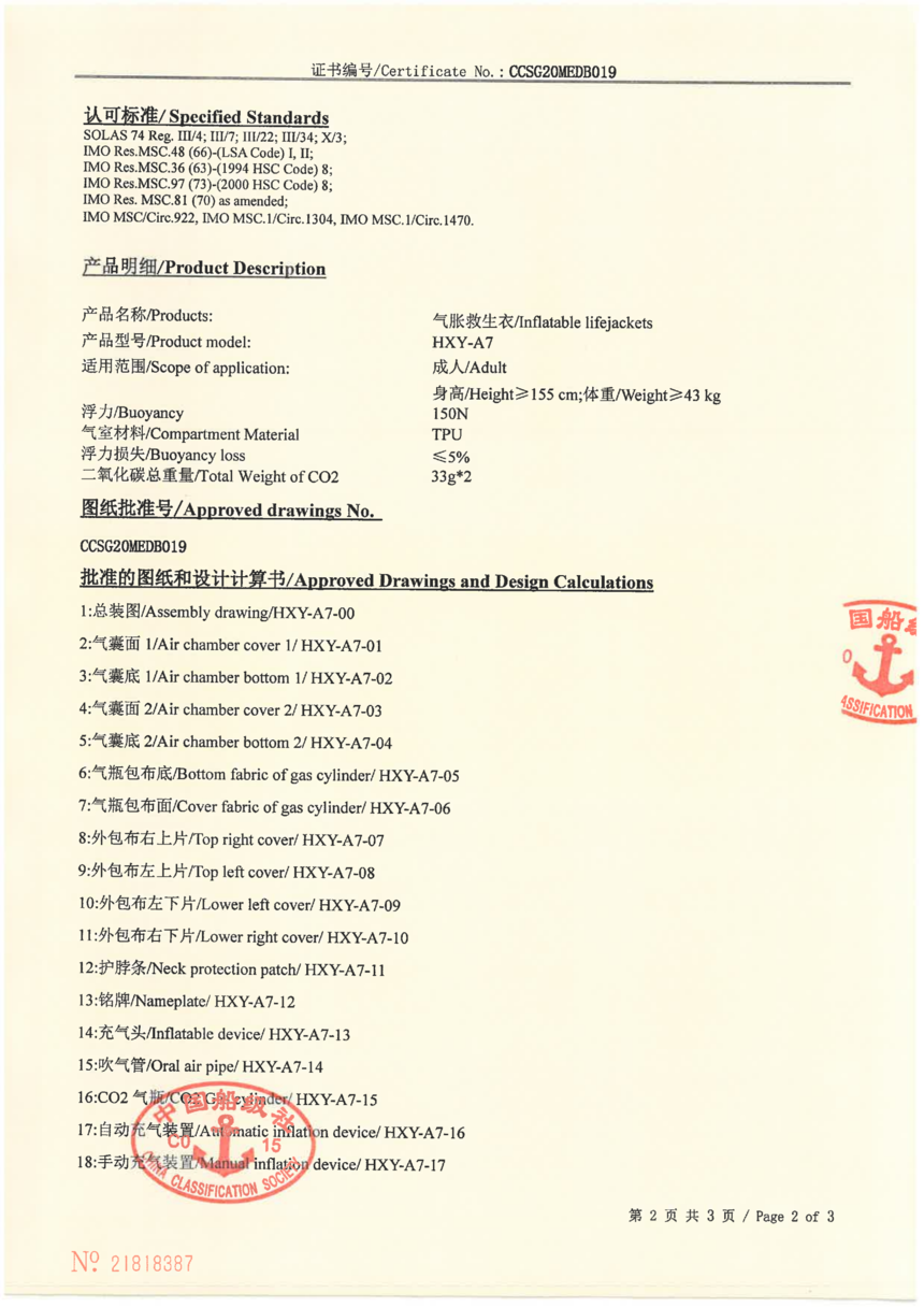 HXY-A7气胀救生衣 EC证书